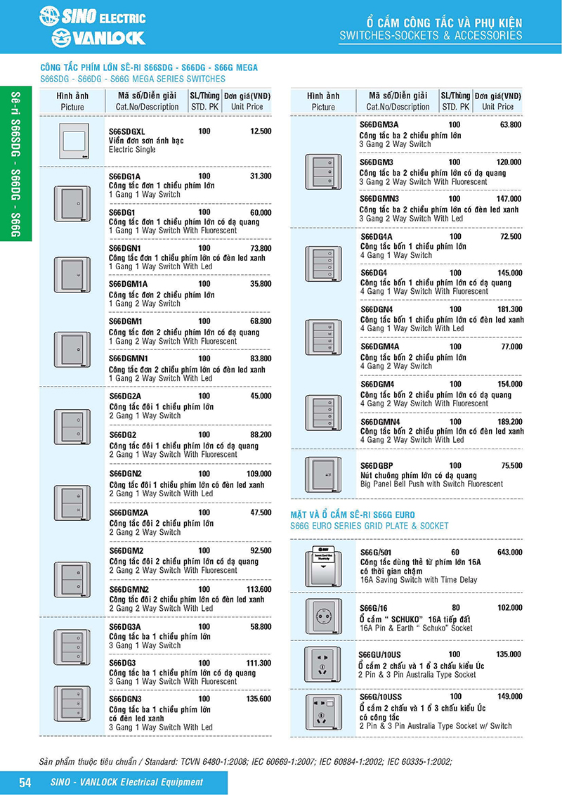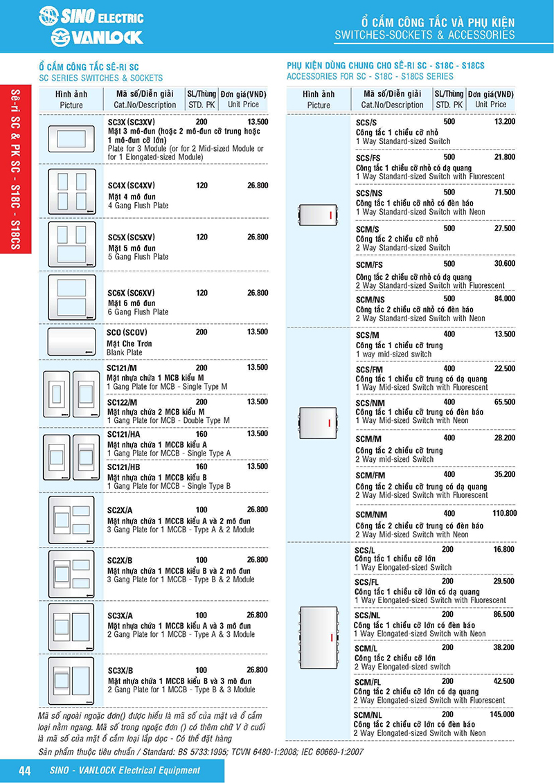 Bảng giá thiết bị điện Sino-Vanlock