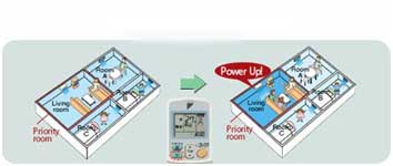 Chế độ vận hành (làm mát/ sưởi ấm) của dàn lạnh hoặc nóng ở phòng ưu tiên sẽ được chú trọng hơn các dàn lạnh ( nóng) ở các phòng khác đang hoạt động ở chế đệ kém ưu tiên . Lúc này, dàn lạnh(nóng) ở các phòng khác sẽ buộc phải chuyển sang chế độ chờ.