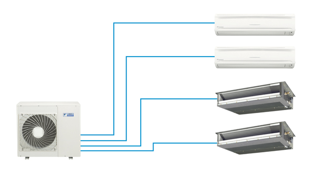 Điều hòa Multi Daikin được thiết kế để có thể một dàn nóng kết nối tối đa 2- 4 dàn lạnh, trong nhà với 3 loại dàn lạnh chính làtreo tường, áp trần và âm trần nối ống gió…