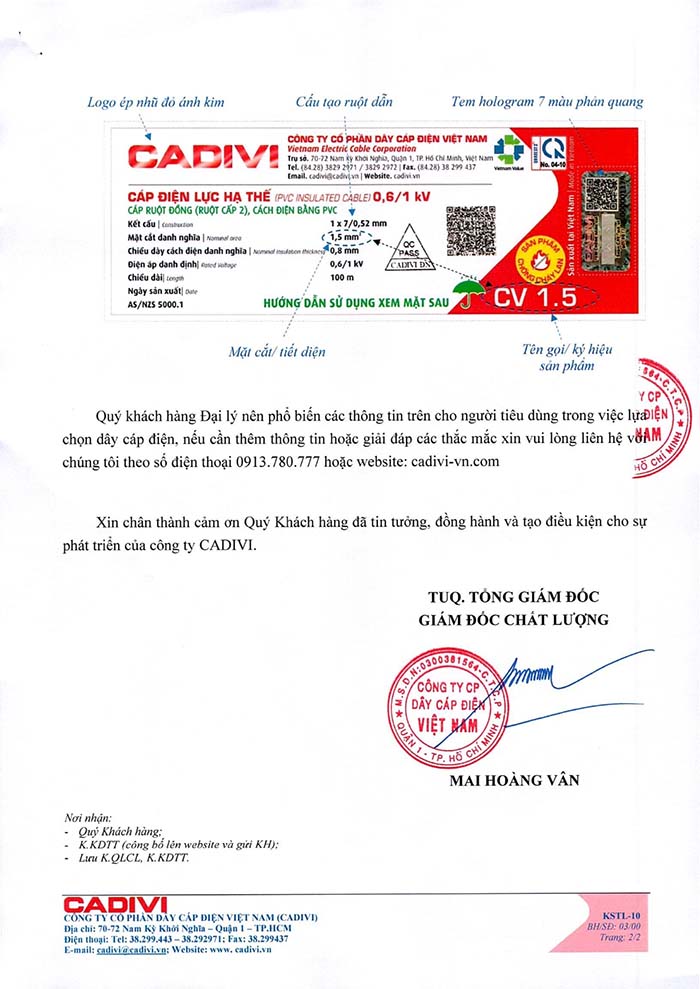 Lựa chọn dây dẫn phù hợp với nhu cầu, nhận biết hàng chính hãng CADIVI